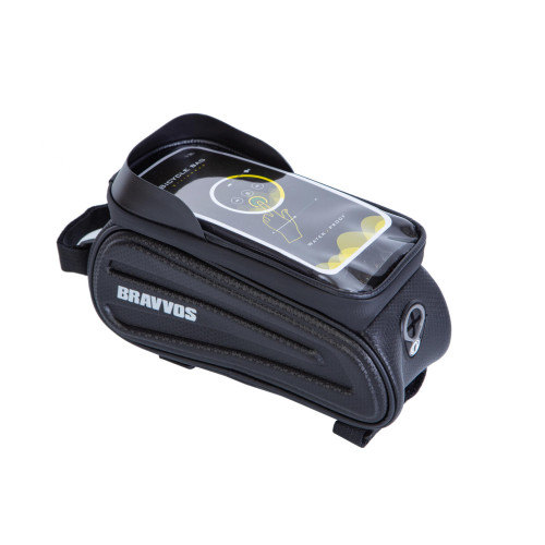 Велосумка на раму водовідштовх. матеріал 23x11x11 см BRAVVOS SAB010-E003 чорний з білим з відділенням для смартфона AM (брендоване пакування)