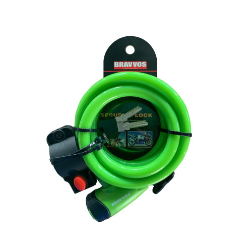 Замок тросовий на ключі BRAVVOS LOC-065-110 1500мм *12мм зелений AM (брендоване пакування)